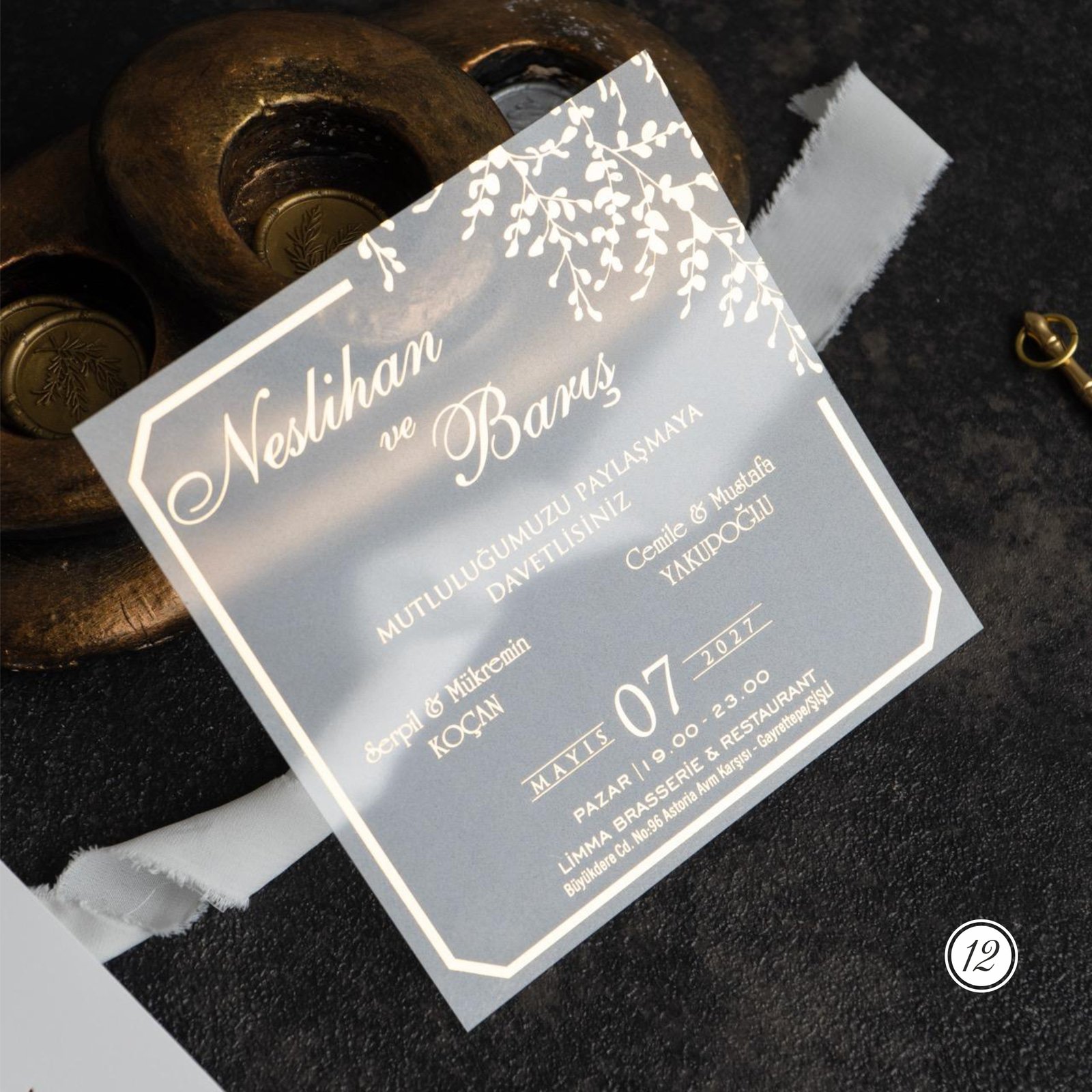 • Davetiye kutulu olarak tasarlanmış olup zarf ve aksesuarları içerisinde bulunmaktadır. ,
