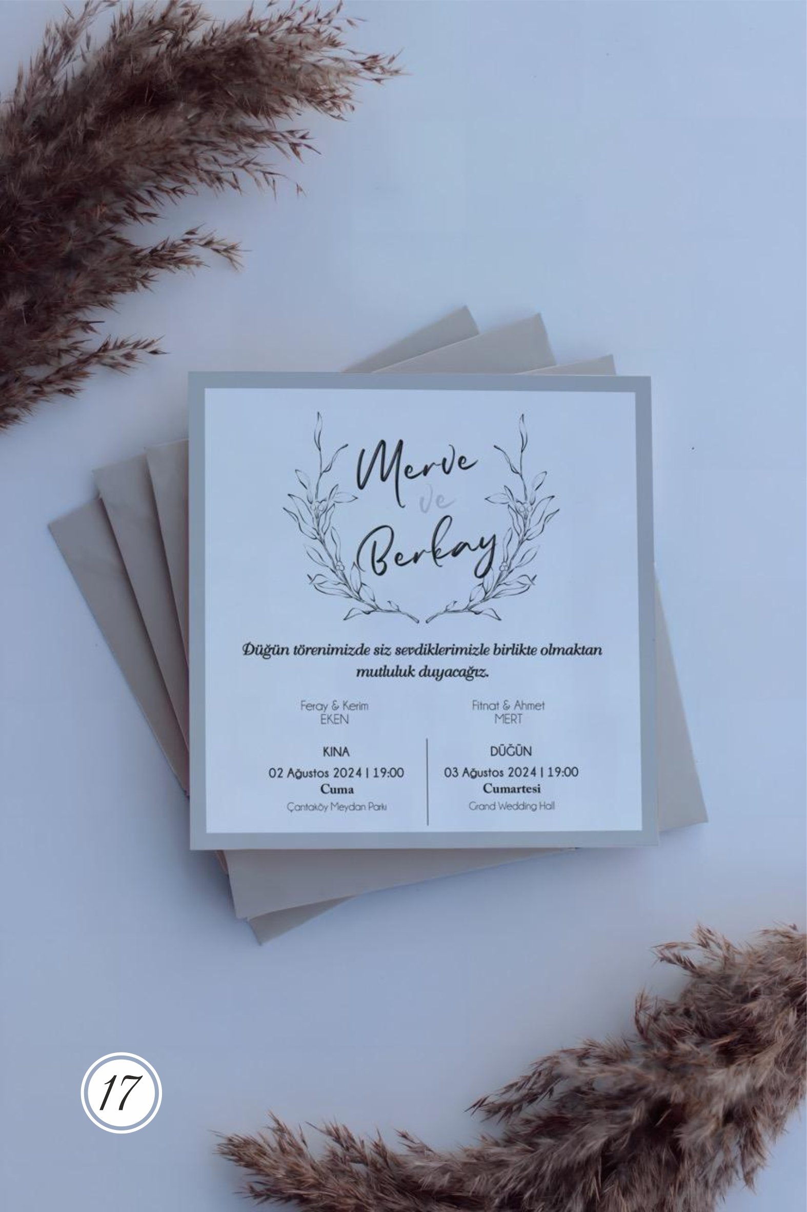 • Davetiyenin katlama/birleştirme ve zarflama işlemi müşteriye aittir.